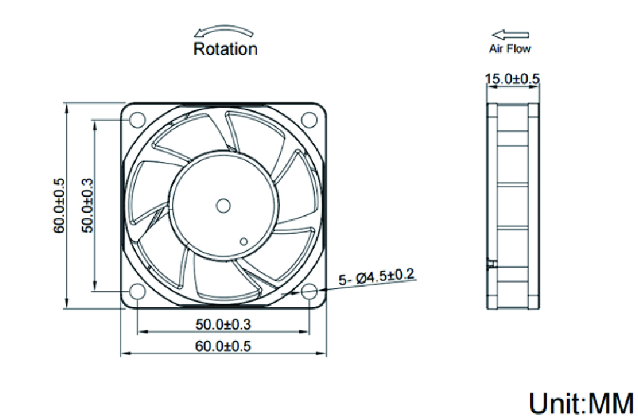 | 風(fēng)扇框體材料 | PA塑料UL94 V0 |