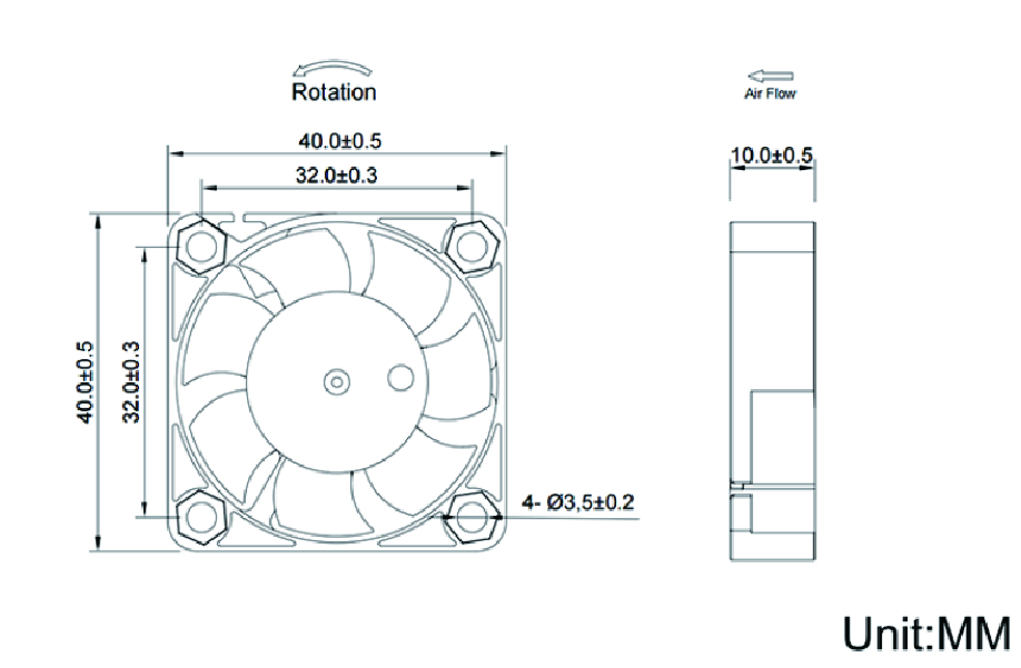 | 風(fēng)扇框體材料 | PA塑料UL94 V0 |