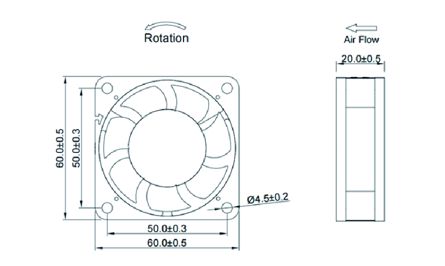 | 風(fēng)扇框體材料 | PA塑料UL94 V0 |