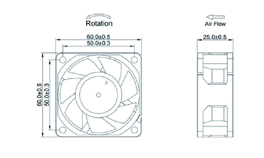 | 風(fēng)扇框體材料 | PA塑料UL94 V0 |